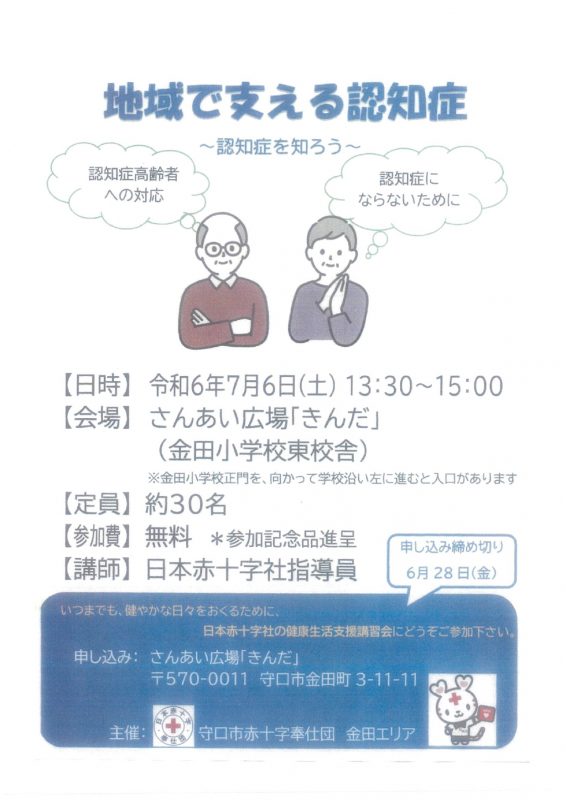 日本赤十字社の健康生活支援講習会にどうぞご参加ください。
