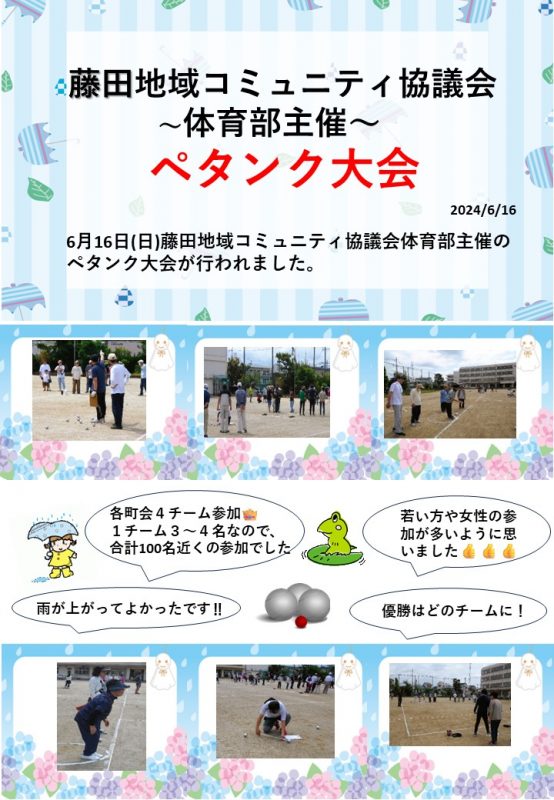 藤田地域コミュニティ協議会 体育部主催のペタンク大会の様子です