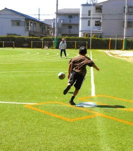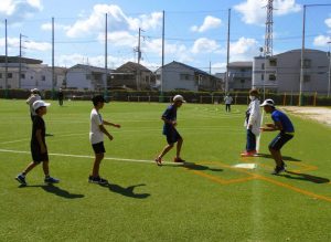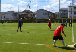 炎天下の中キックベースボールの練習をしていた時の様子です