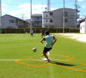 炎天下の中キックベースボールの練習をしていた時の様子です