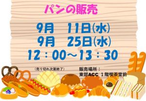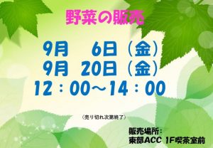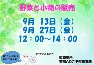 9月の野菜・パン・洋菓子・小物販売の日程です